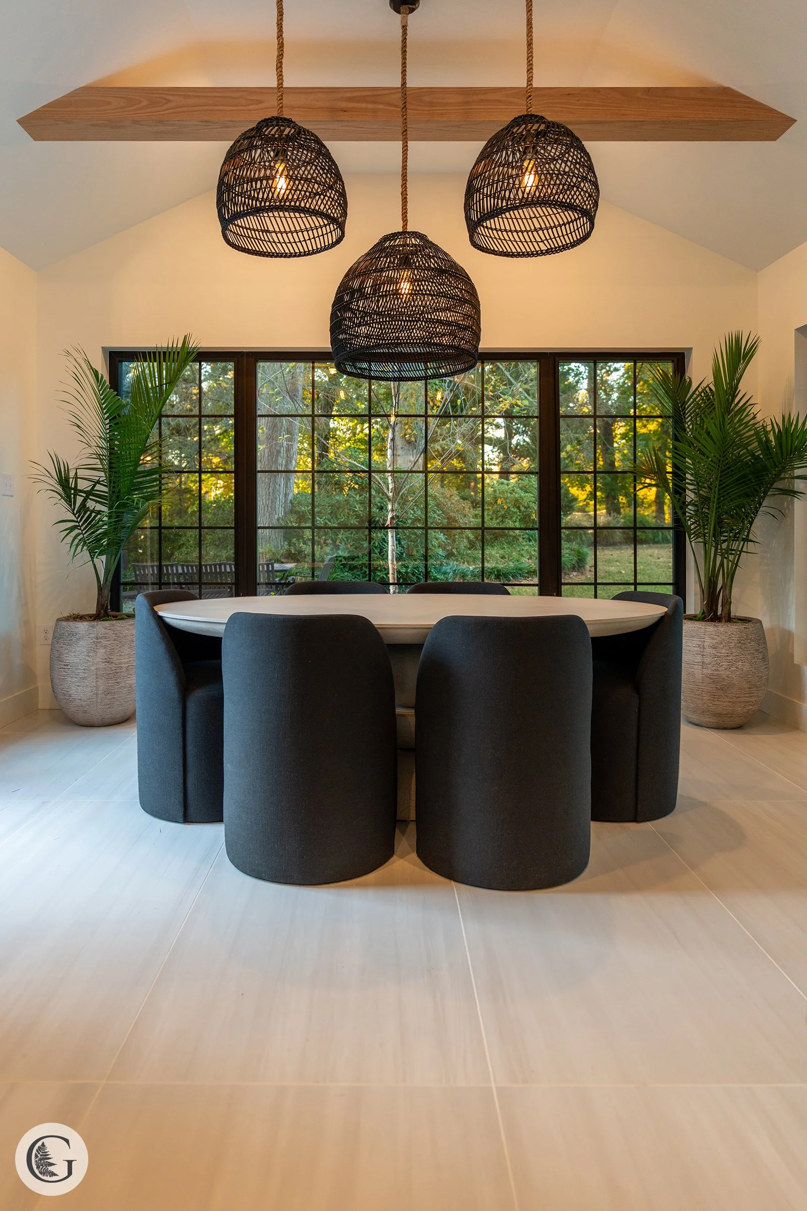 Tucked into the leafy residential landscapes of Villanova, PA, this elegant indoor-outdoor living space is a signature example of GreenRoots Design Firm’s holistic and highly intentional approach to design. The homeowners envisioned a space that flowed seamlessly from interior comfort to garden tranquility, and GreenRoots responded with a concept that merges natural materials, modern architectural lines, and soft, welcoming furnishings. This project embodies our philosophy that outdoor spaces should be an extension of the home—both aesthetically and functionally.
